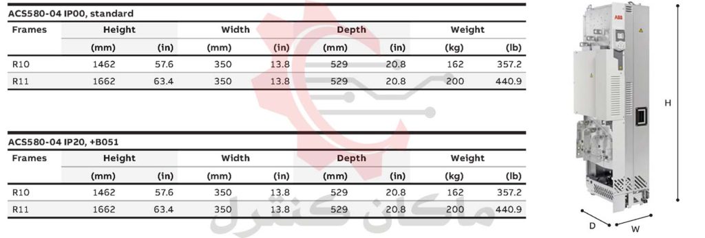 ابعاد درایو ABB ACS580-04
