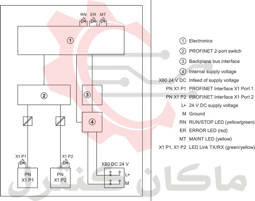 - اینترفیس 1: پورت RJ45 (PROFINET, Ethernet) دو سوئیچه یکپارچه (سرعت 100Mbit/s)