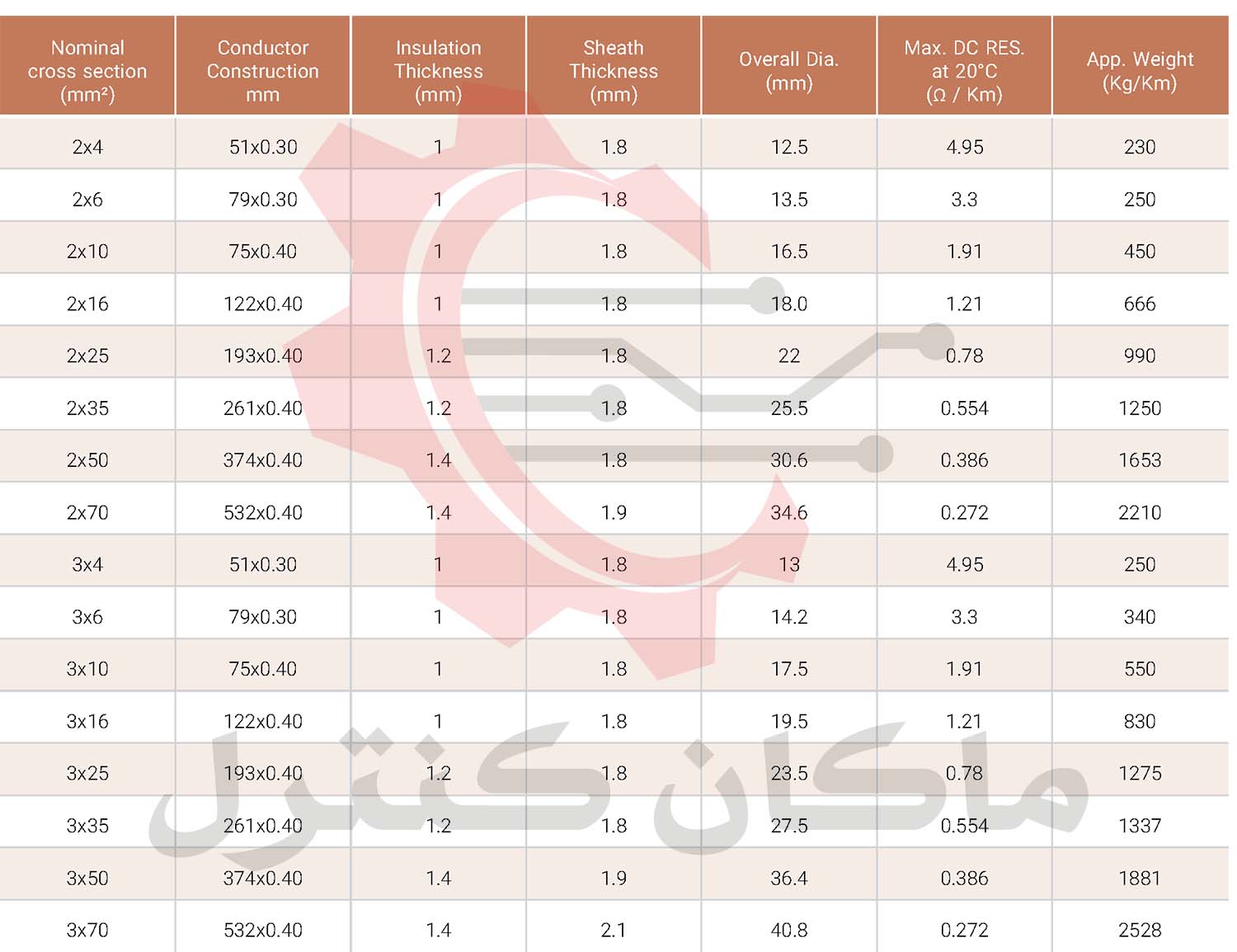 مشخصات فنی کابل قدرت افشان 70×3 همدان NYMHY