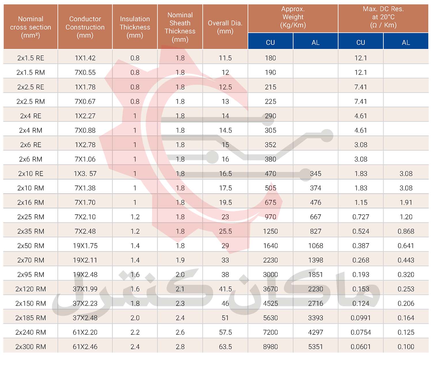 - ساختار کابل: Al / PVC / PVC / PVC