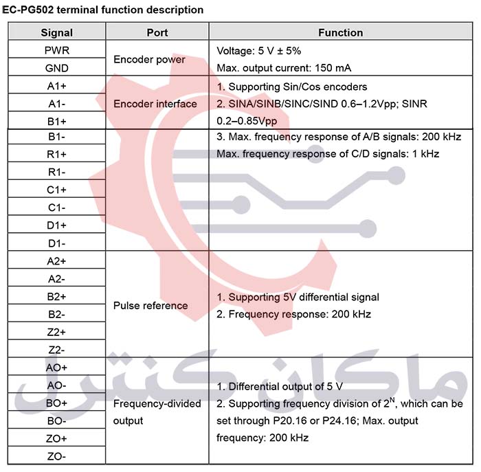 مشخصات فنی کارت Sin/Cos PG اینورتر اینوت