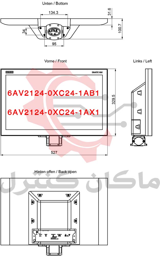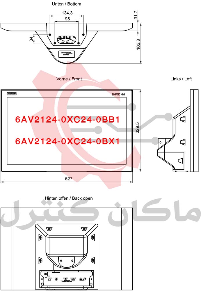 ابعاد-HMI-SIEMENS-6AV2124-0XC24-0BB16AV2124-0XC24-0BX1